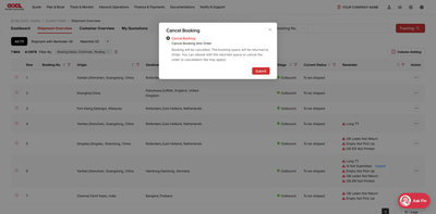 如需取消E-Spot订舱,请前往控制塔中提交取消请求。步骤如下: